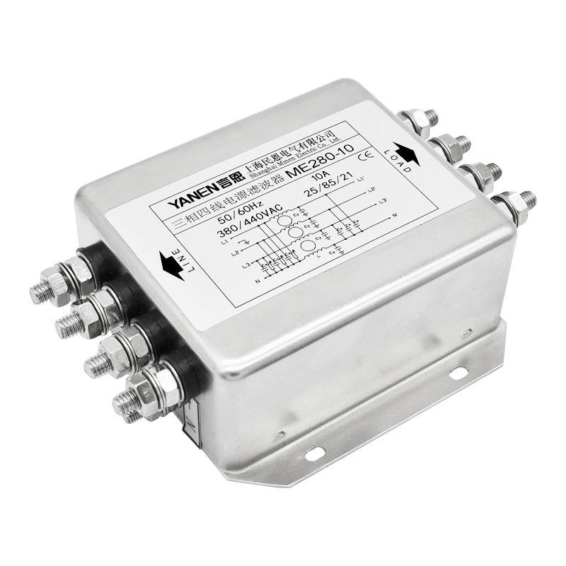 應(yīng)用設(shè)備:三相四線共模增強(qiáng)型雙節(jié)電源濾波器,雙節(jié)濾波,性能更高,對(duì)差模干擾和共模干擾具有優(yōu)良的抑制特性