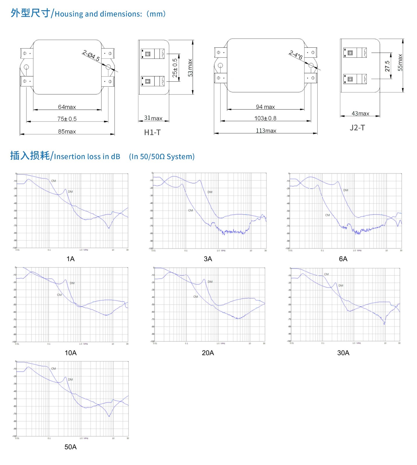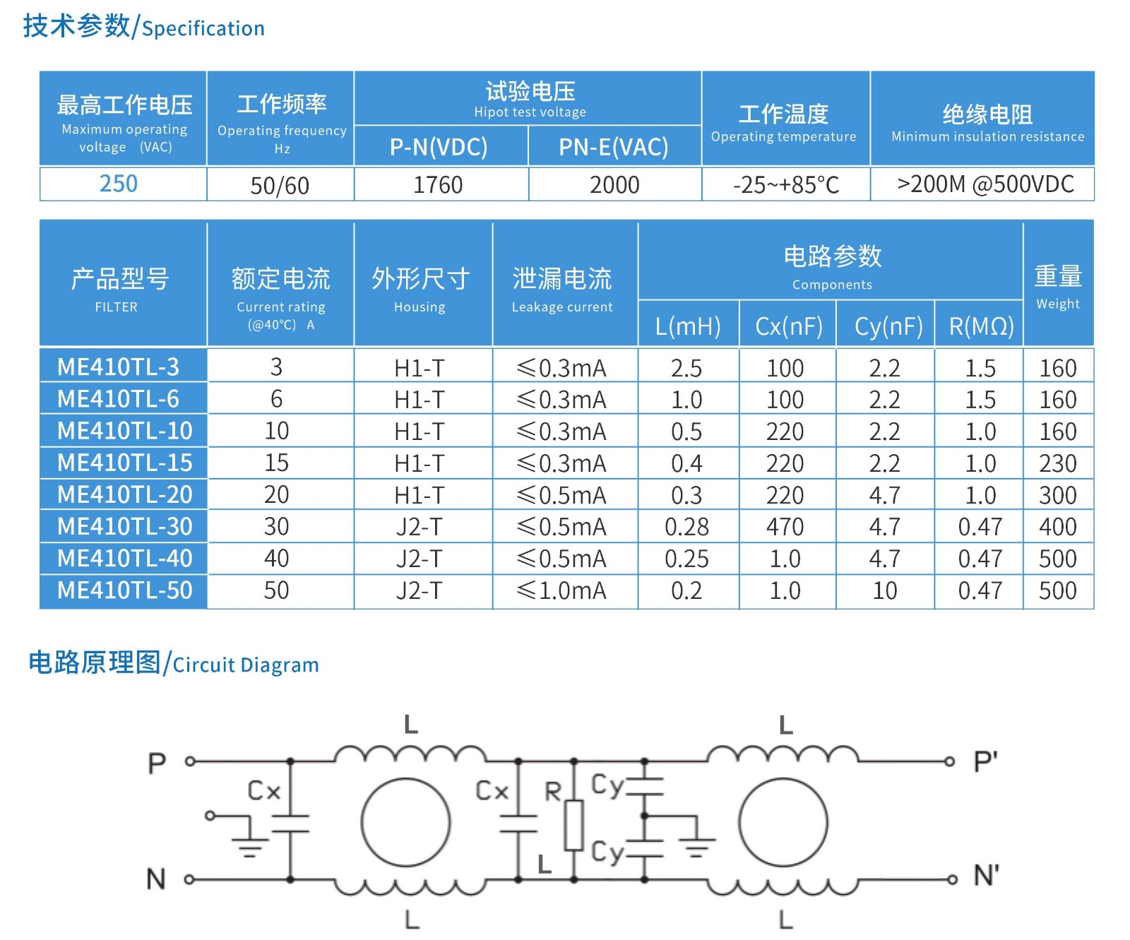 雙節濾波,共模濾波效果優良,泄露電流低,應用廣泛,適應各種阻抗匹配,對快速瞬變脈沖群 (EFT) 等實 驗具有良好的輔助效果。