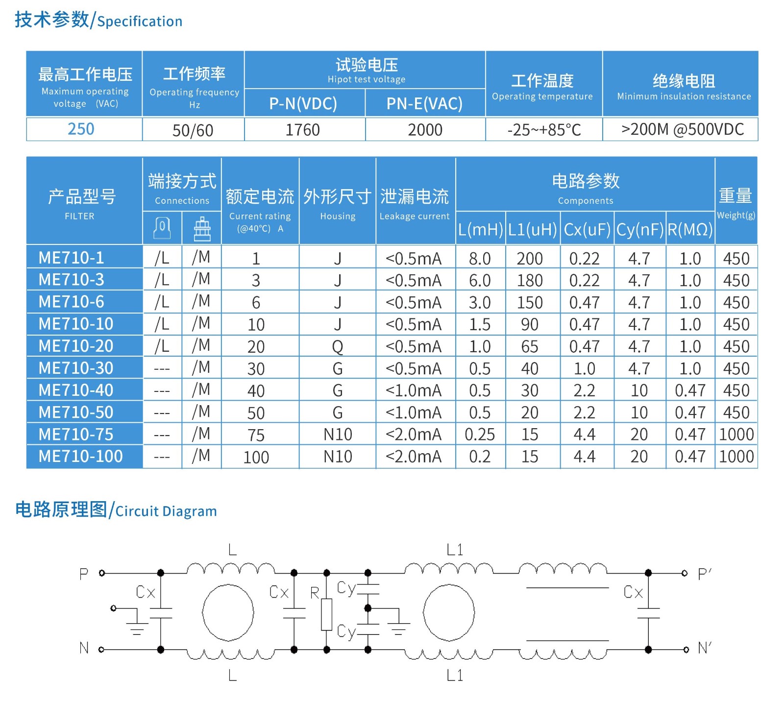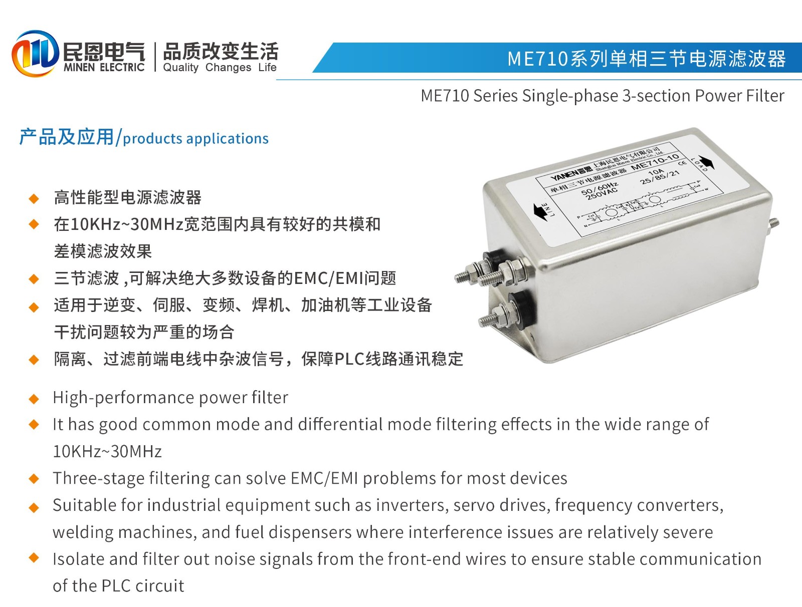 高性能型電源濾波器,在10KHz~30MHz寬范圍內具有較好的共模和差模 濾波效果 三節濾波 ,可解決絕大多數設備的EMC/EMI問題。