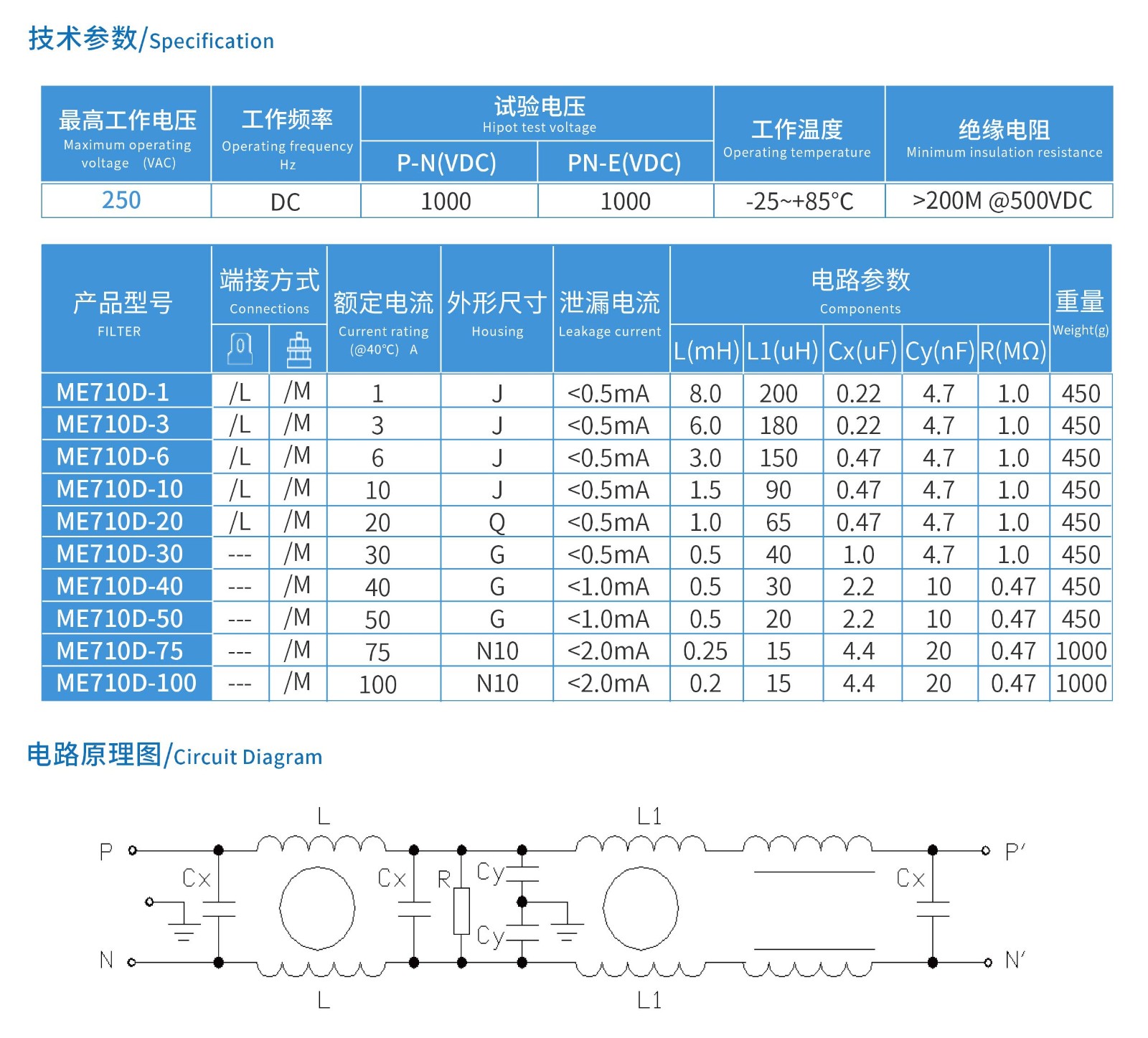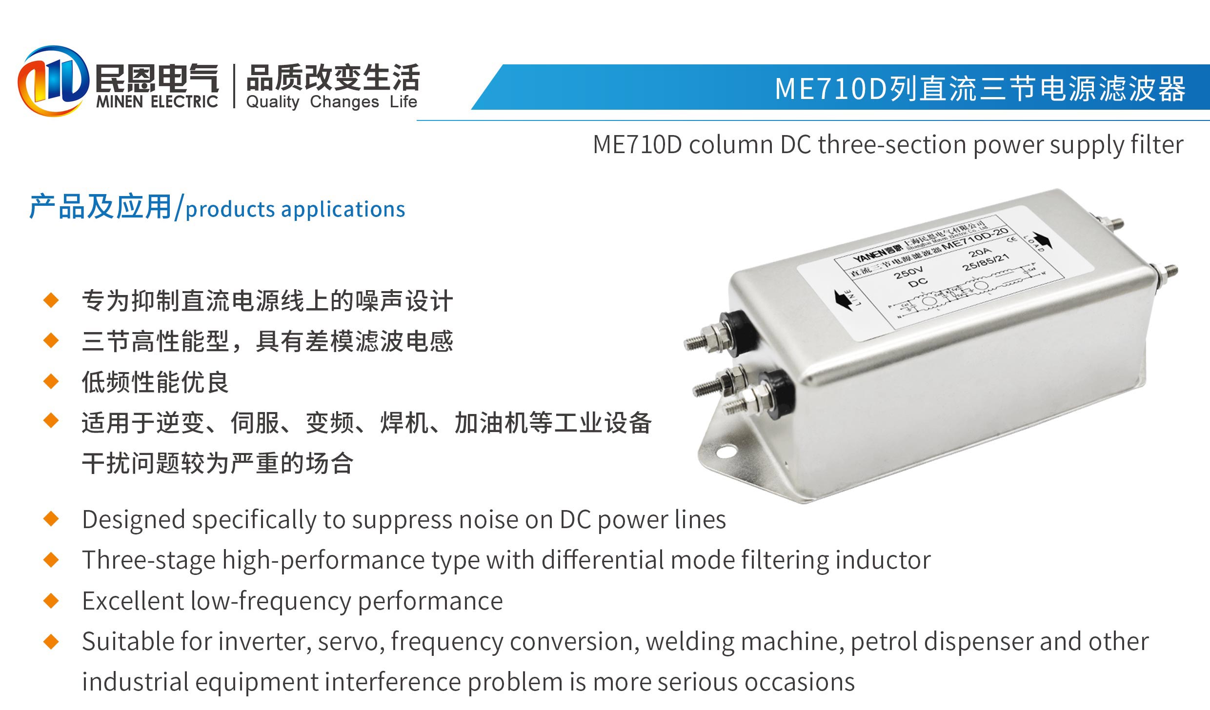 ME710D系列三節高性能直流電源濾波器