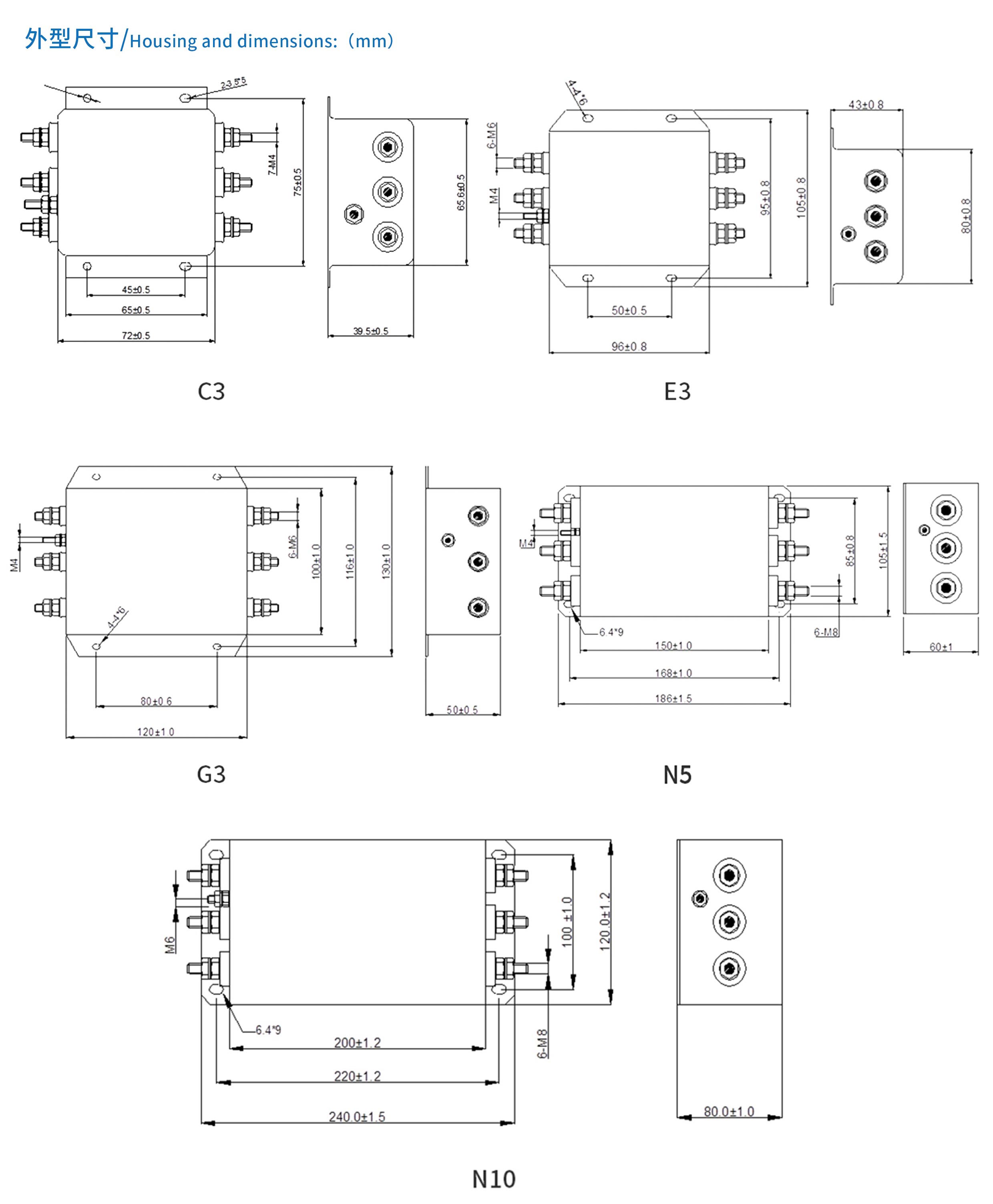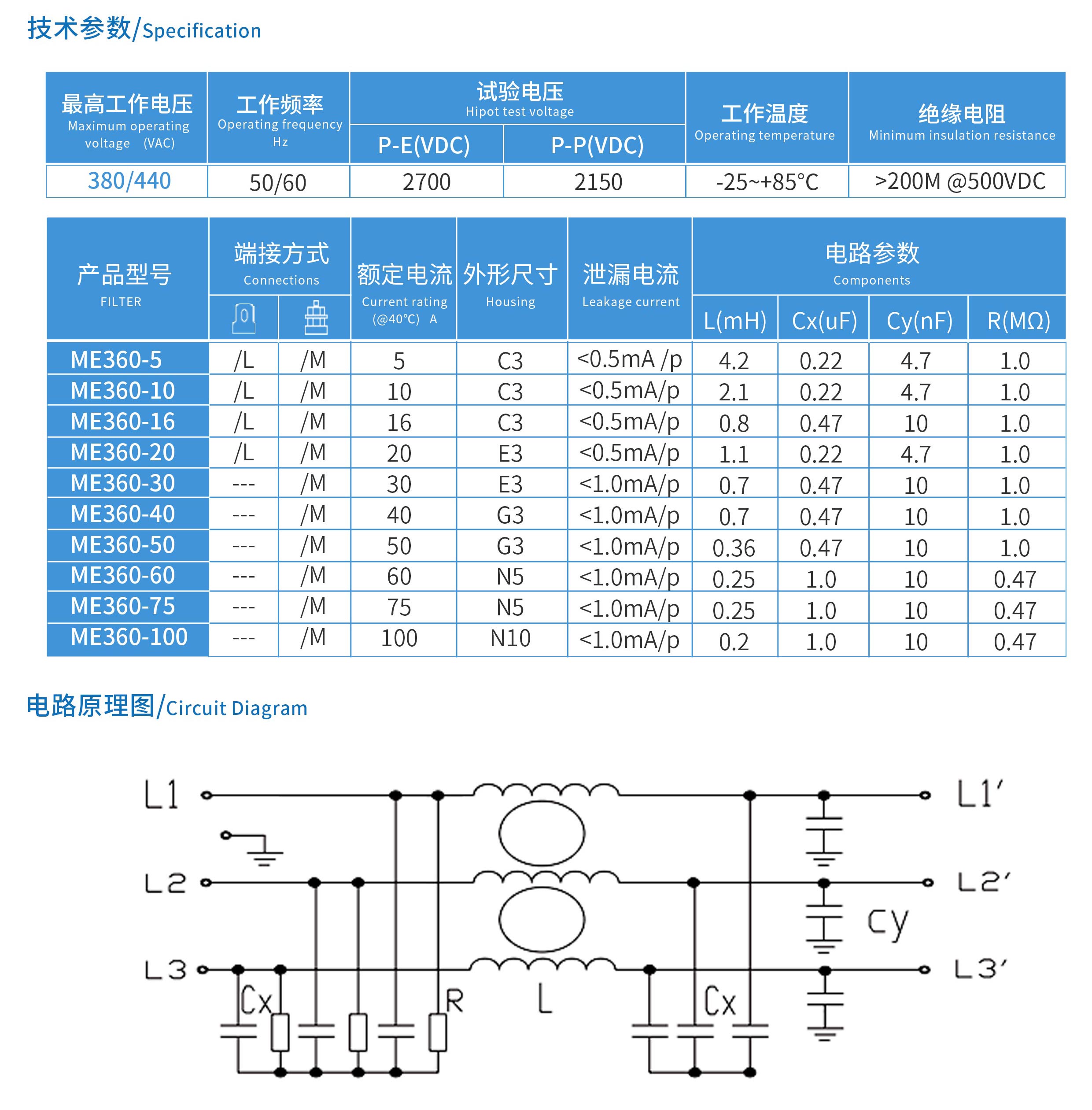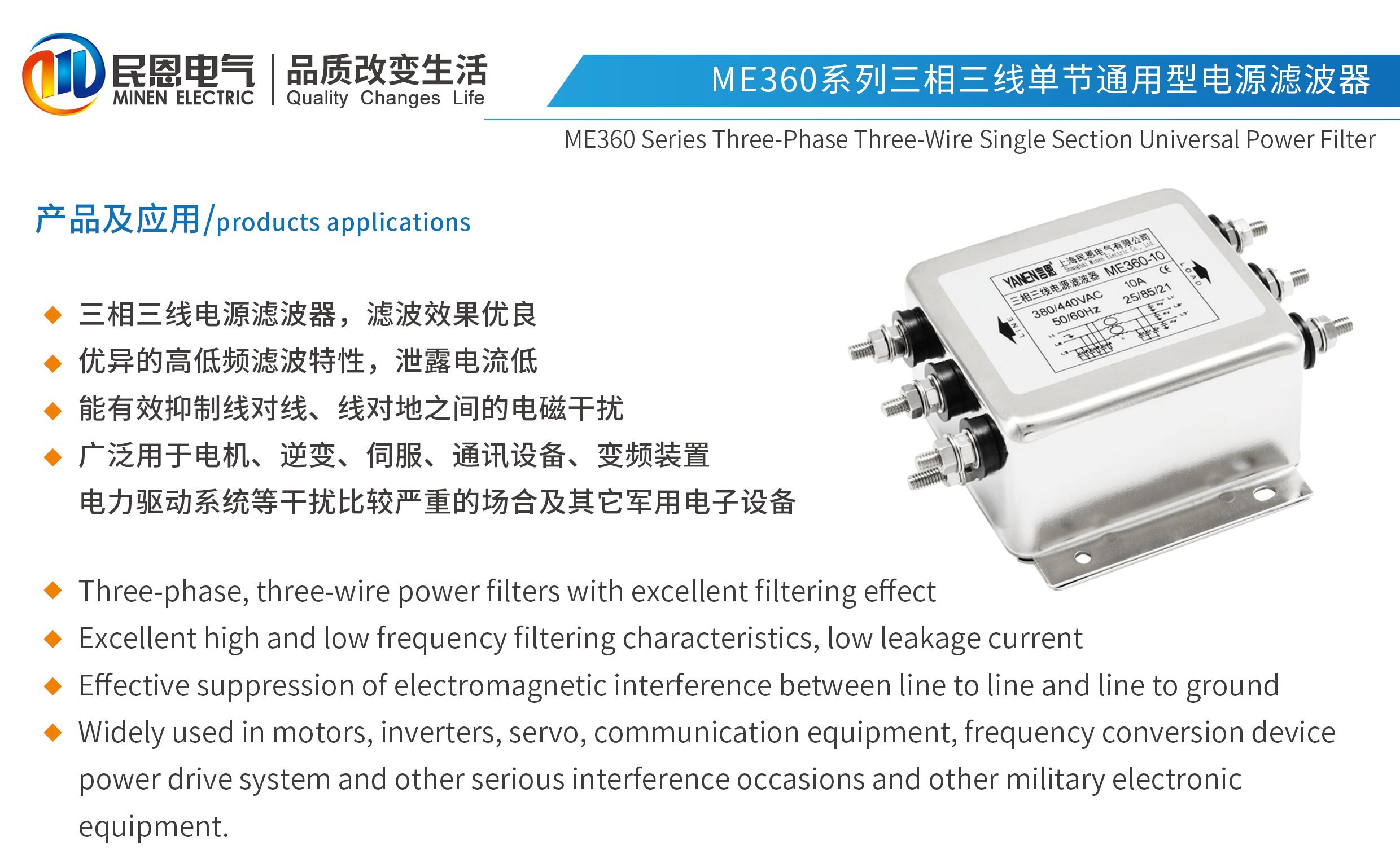 三相三線電源濾波器,濾波效果優(yōu)良,優(yōu)異的高低頻濾波特性,泄露電流低,能有效抑制線對線、線對地之間的電磁干擾