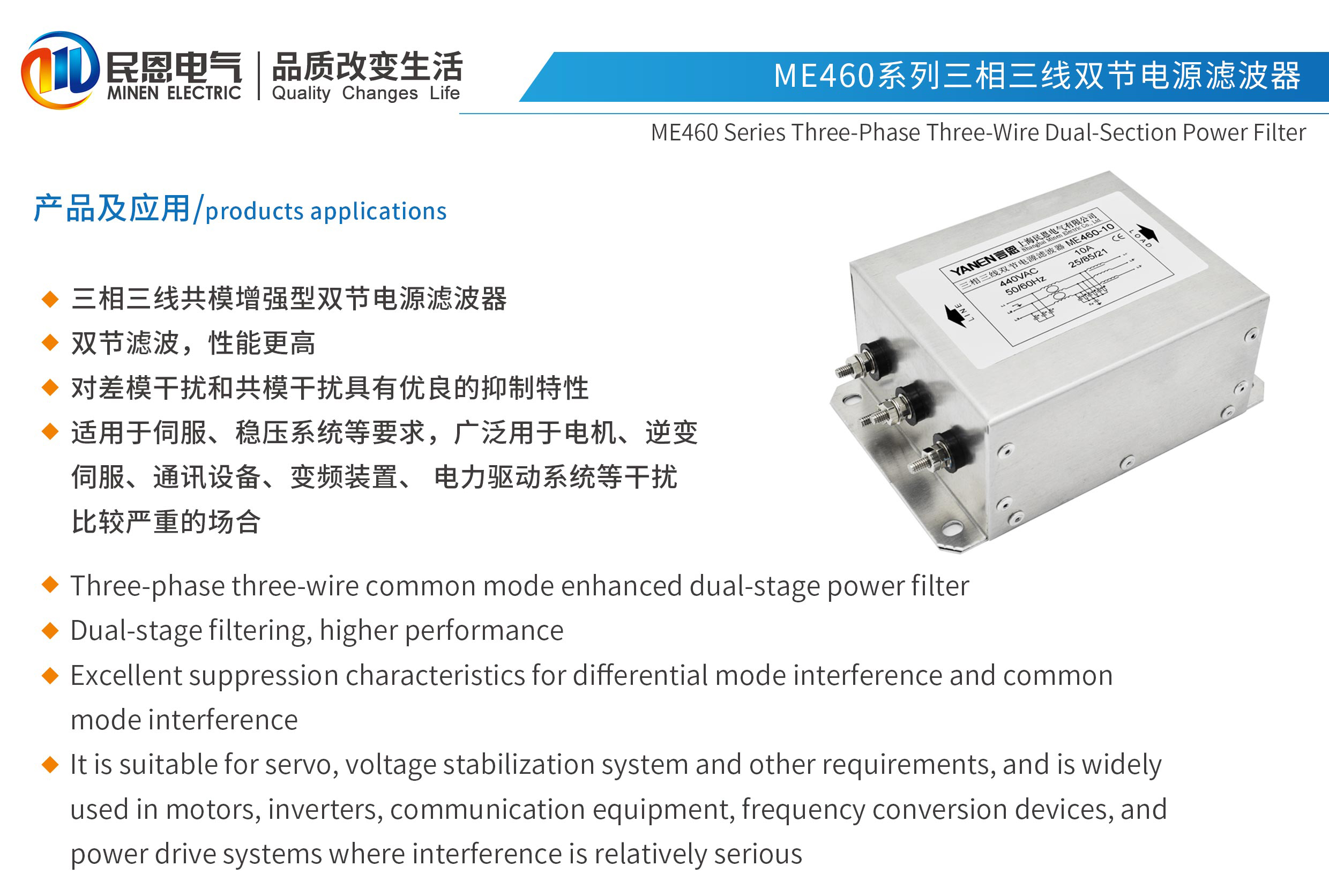 三相三線共模增強型雙節電源濾波器,雙節濾波,性能更高,對差模干擾和共模干擾具有優良的抑制特性